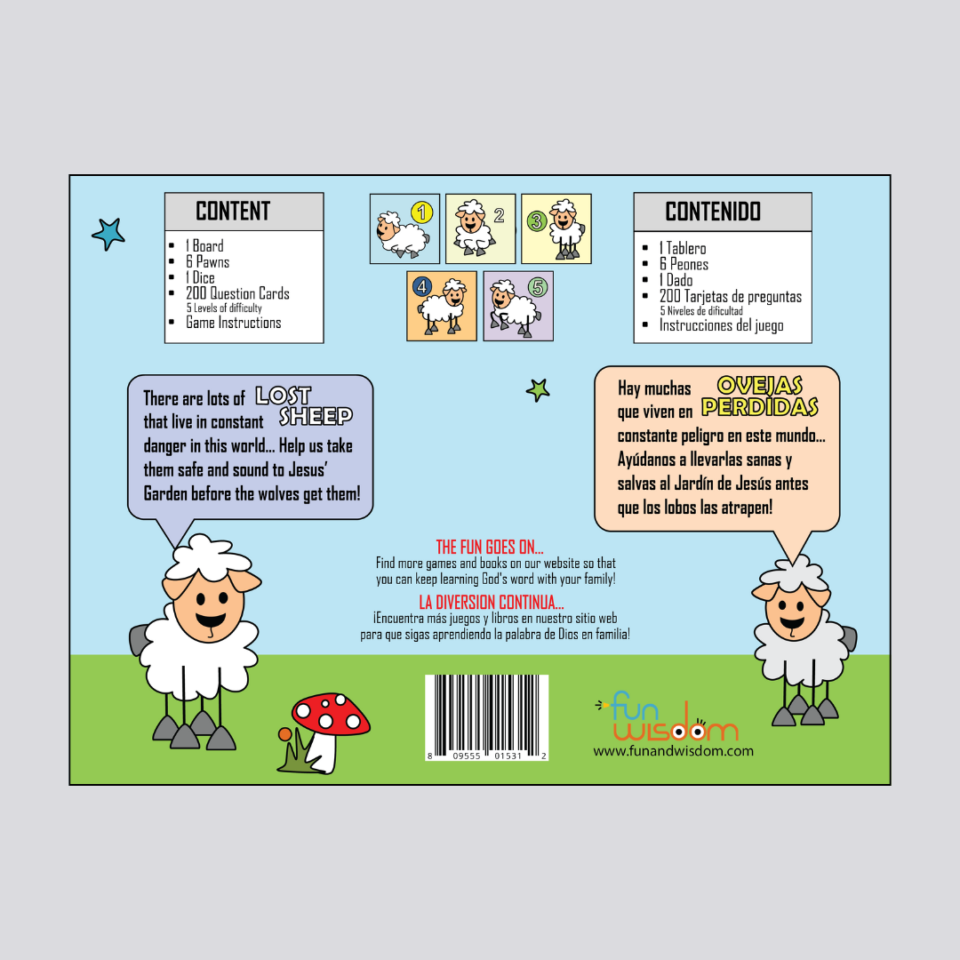Lost Sheep is an amazing board game to learn God’s Word easily while having fun. This game aims to rescue as many lost sheep as possible and bring them back to Jesus’ Garden. To rescue the sheep, players will answer questions about God’s word. Warning: There are wolves in the way that don’t want players…