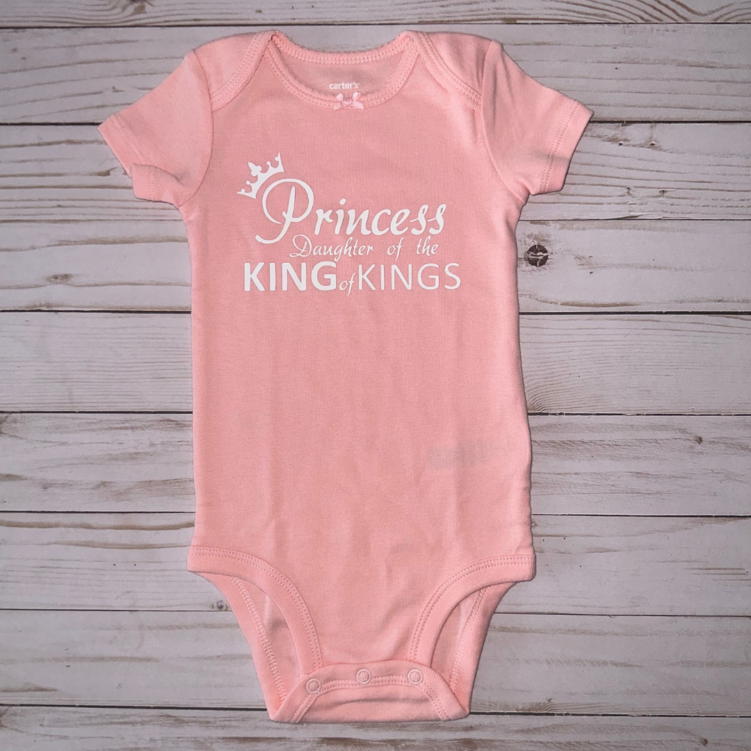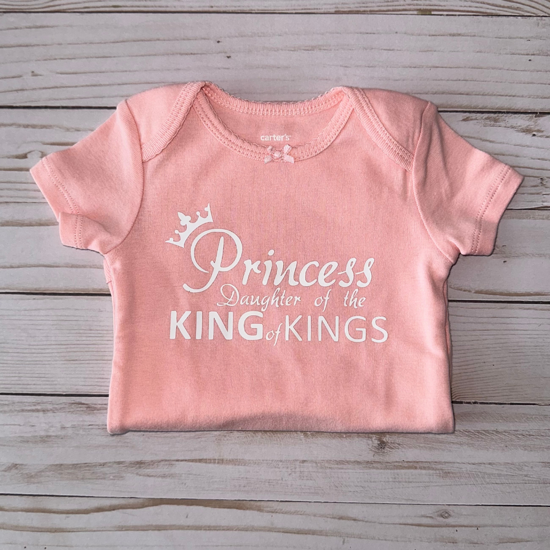 Super soft cotton material.ย Short sleeves.ย Light Pink color with white imprint. Size Newborn. Carters Brand.